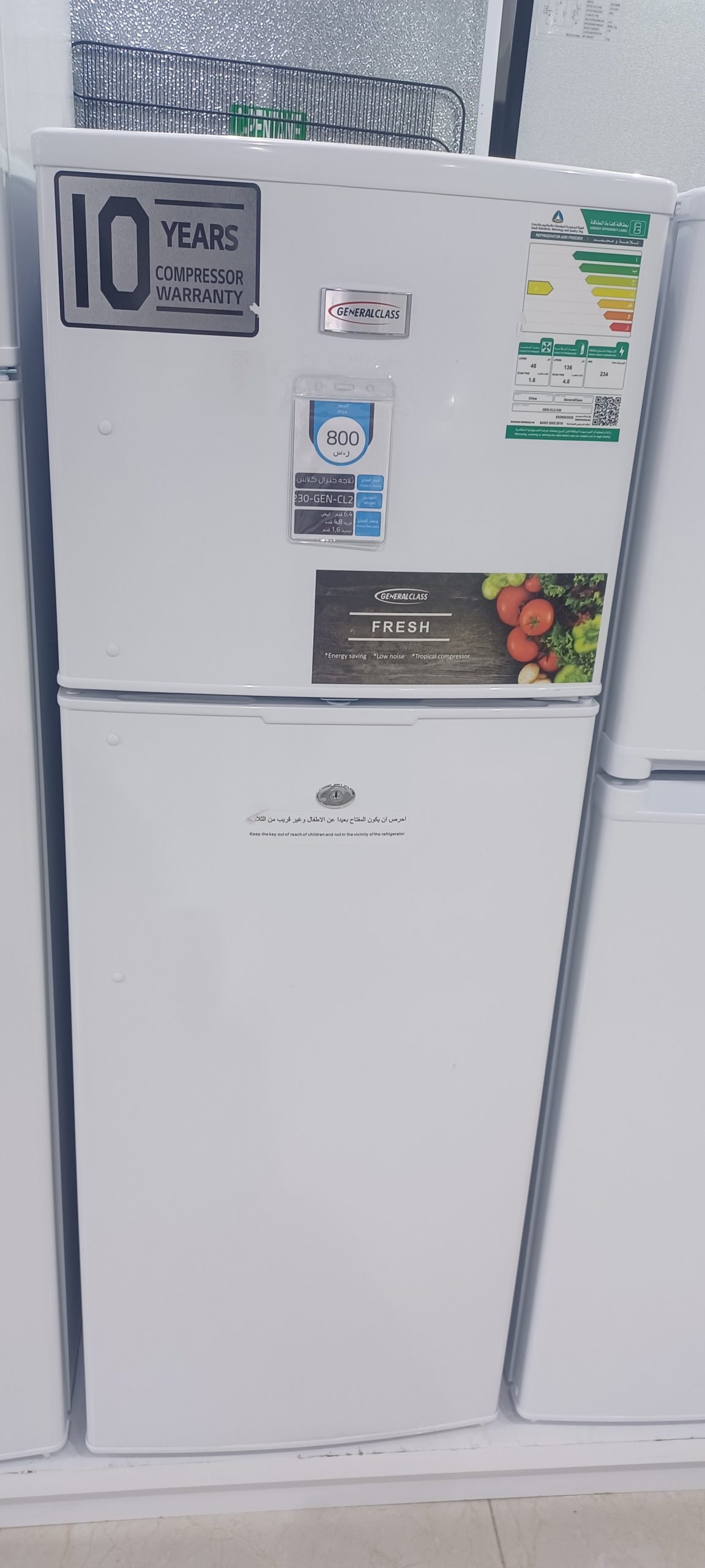 ثلاجه جنرال كلاس ٦.٥قدم ابيض موديل ٢٣٠